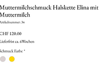 Erfahre mehr über den Bestellprozess für unseren einzigartigen Muttermilchschmuck. Hier sind alle notwendigen Informationen, um Deine Bestellung effizient abzuwickeln. Lasse dich von der bemerkenswerten Einzigart und dem besonderen Wert dieses Muttermilchschmucks überzeugen!